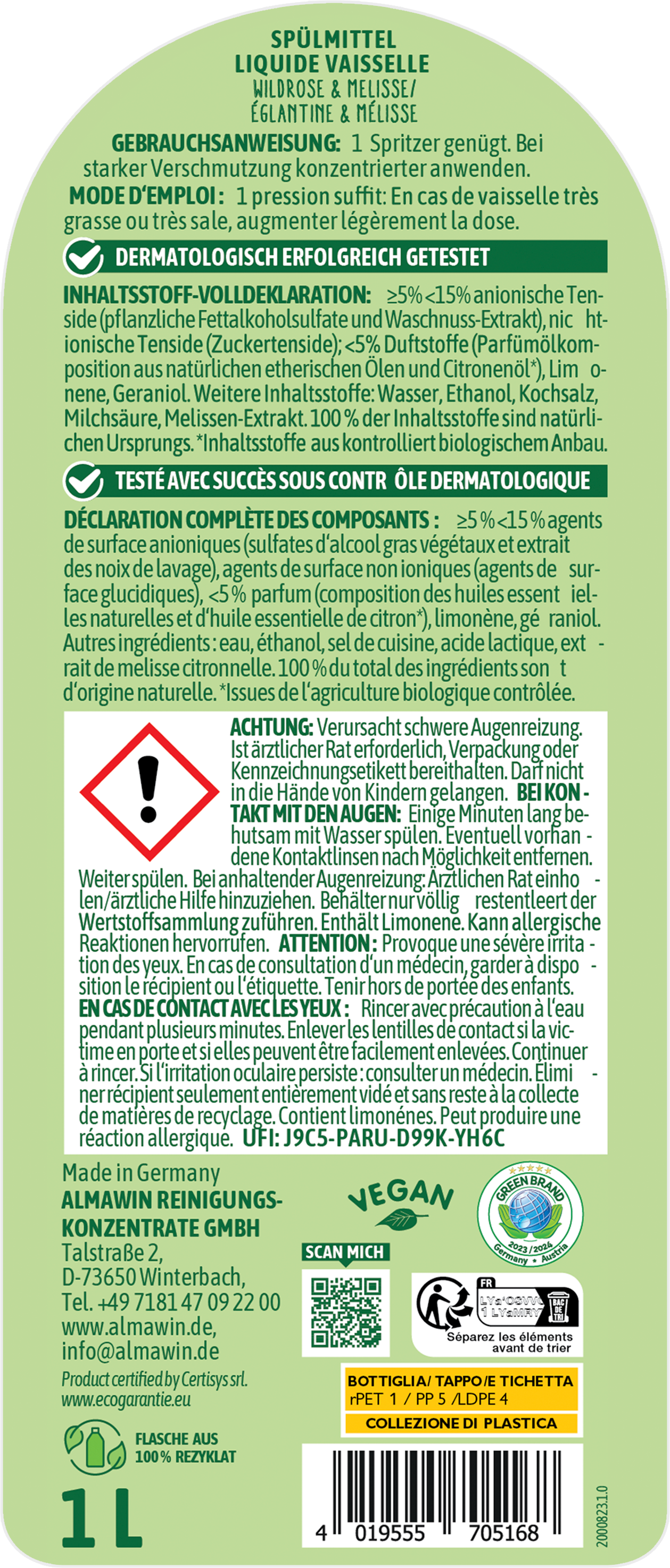 | Hersteller: | AlmaWin Reinigungskonzentrate GmbH, Talstraße 2, 73650, Winterbach, Deutschland, info@almawin.de, www.almawin.de |