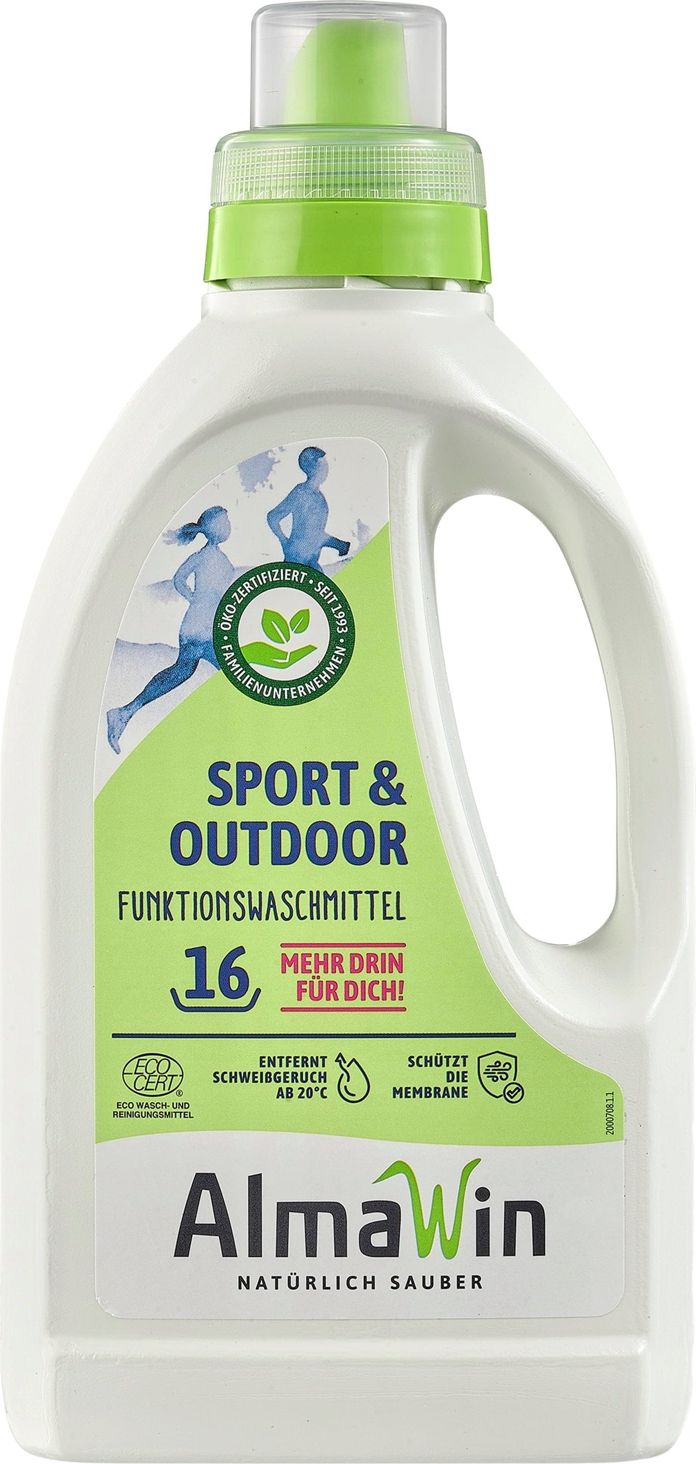 Das Sportfunktionswaschmittel von AlmaWin wäscht einwandfrei sauber und befreit Stoffe wirksam von Körper- und Schweißgeruch. Es schützt Membranfunktionen wie Windschutz und Atmungsaktivität auf natürliche Art und Weise. Es ist für alle Funktions- und Membrantextilien geeignet.