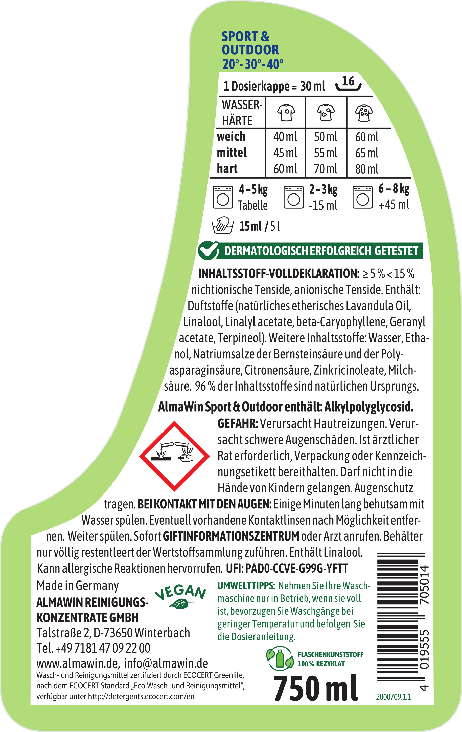 AlmaWin Waschmittel Sport & Outdoor, 750 ml