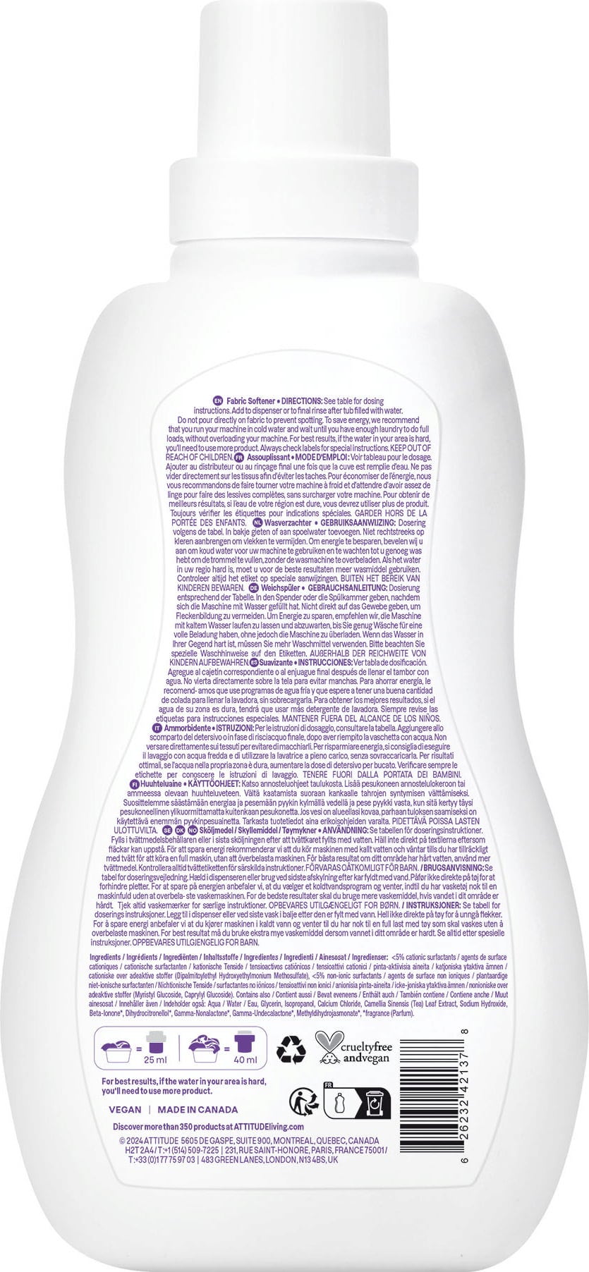 Der natürliche Weichspüler von ATTITUDE sorgt für angenehm weiche und fruchtig-blumig duftende Wäsche von Babys und Kindern.
