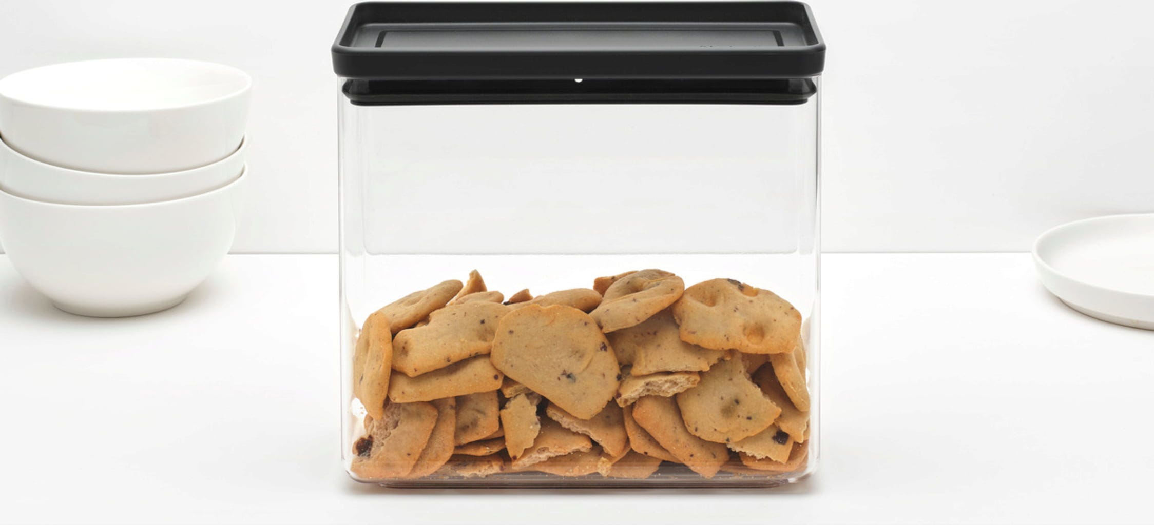 Die durchsichtigen Kunststoffbehälter der Tasty+-Serie von Brabantia sorgen für Ordnung im Vorratsschrank. In verschiedenen Größen platzsparend stapelbar, zeigen sie den Inhalt auf einen Blick und halten Lebensmittel zuverlässig frisch.