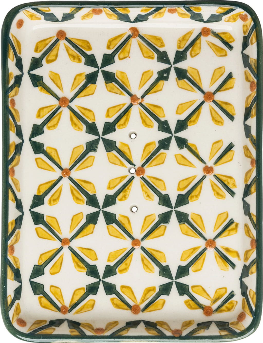 Mit ihrem liebevoll gestalteten Muster macht sie an jedem Waschbecken eine gute Figur und hält Seifenstücke sicher an ihrem Platz.