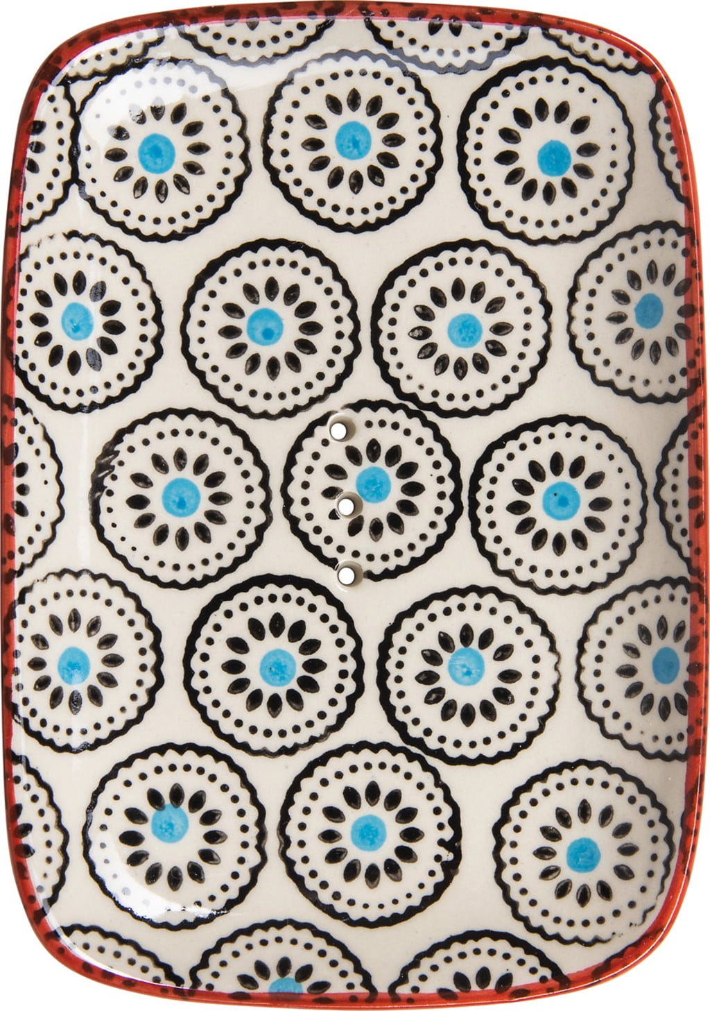 Mit dieser Seifenschale wird dein Waschbecken zum Hingucker! Ihr handgestempelter, zeitloser Print ist äußerst detailliert und macht das Stück zum Unikat. Sie hat außerdem Löcher für den Wasserablauf, sodass die Seife nach Gebraucht gut trocknen kann.