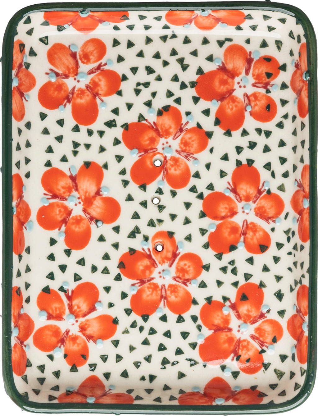Die knalligen Farben und das florale Design, das mit geometrischen Details kombiniert wurde, sind ein absoluter Hingucker im Bad! Die praktischen Ablauflöcher sorgen dafür, dass Wasser aus der Seifenablage abrinnen und die Seife nach Gebrauch gut trocknen kann.